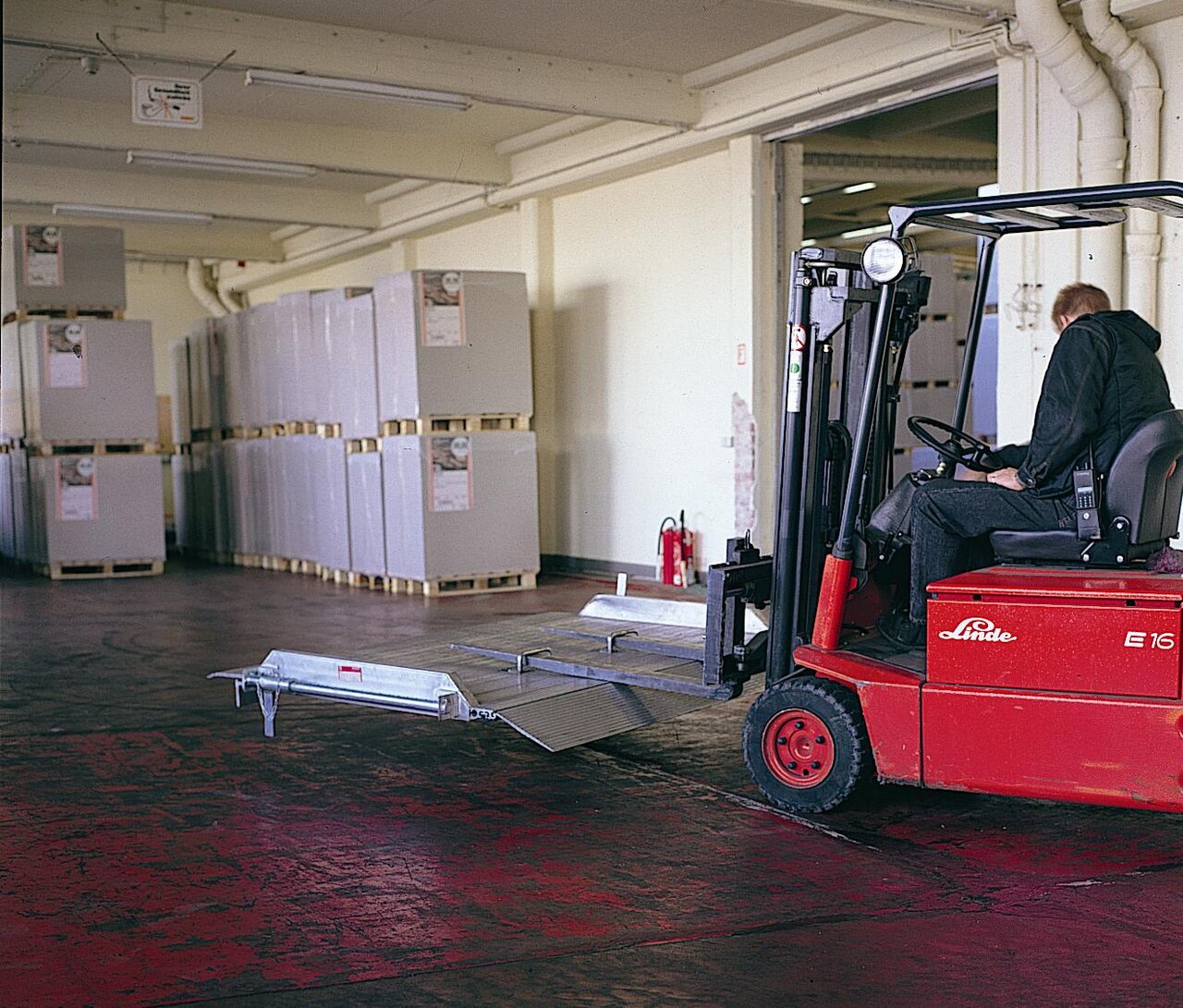 Unsere mobilen Verladebleche und Containerbrücken aus hochwertigem, rutschhemmendem Aluminium für Hubwagen, Ameisen oder Stapler bieten die perfekte Kombination aus hoher Belastbarkeit und einfacher Handhabung. Sie ermöglichen einen sicheren Ausgleich von Höhendifferenzen gemäß den aktuellen Arbeitssicherheits-Richtlinien – ohne aufwendige Montage.
